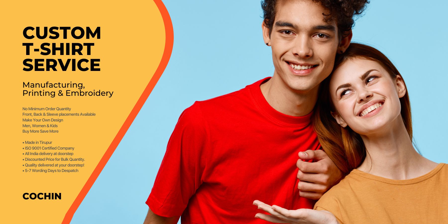 Polo T-Shirts(India) Cochin do not place any constraints regarding the minimum order to be placed. You can order just 1 (Single) T-shirt / Hoodie through our Digital / Screen printing & Embroidery service.