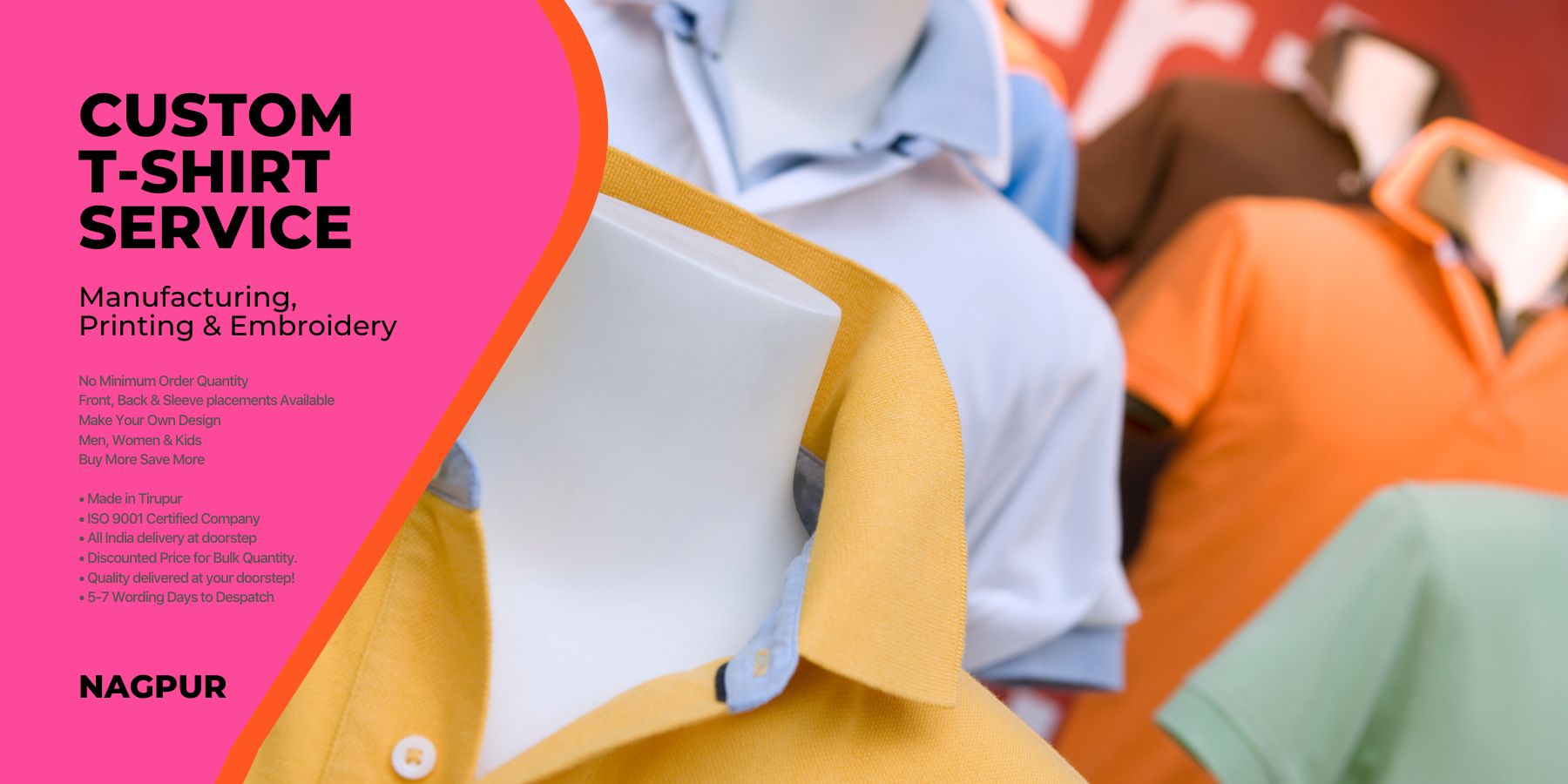 Polo T-Shirts(India) Nagpur do not place any constraints regarding the minimum order to be placed. You can order just 1 (Single) T-shirt / Hoodie through our Digital / Screen printing & Embroidery service.